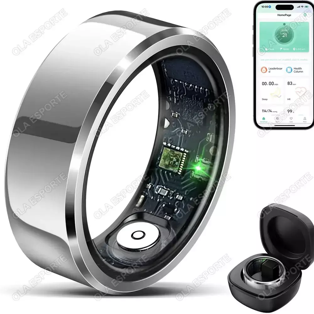 O anel inteligente Ola Esporte é um usável elegante e futurista projetado para se integrar perfeitamente ao seu dia a dia.Combinando tecnologia de ponta com design elegante, este dispositivo compacto oferece rastreamento de saúde, controle de gestos e muito mais, tudo a partir do seu dedo.