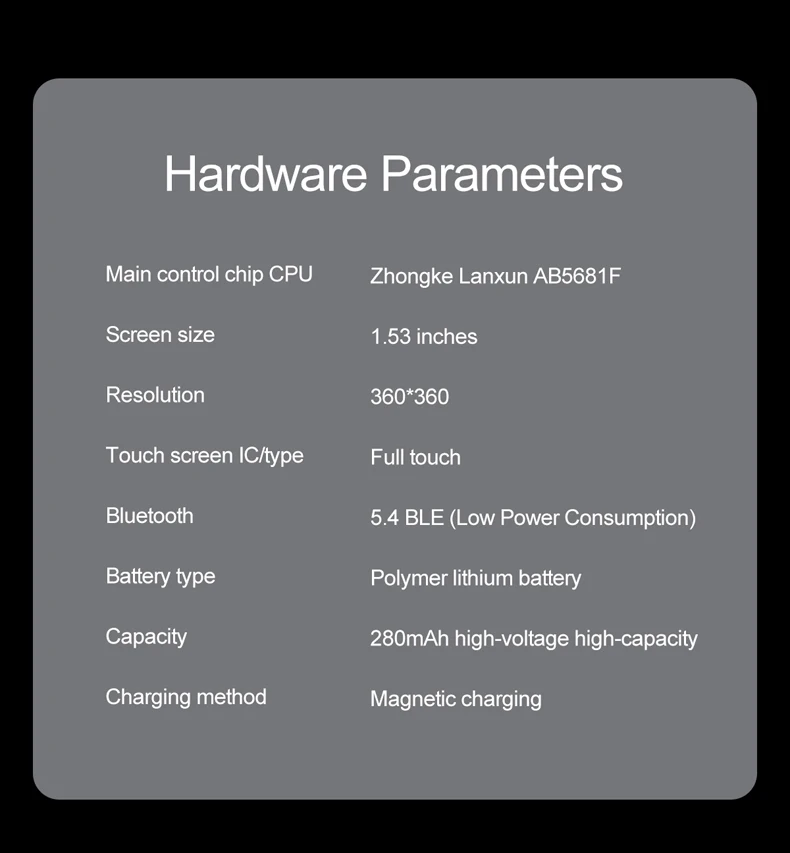 ?Tela HD de 1,53 polegadas, resolução 360×360;