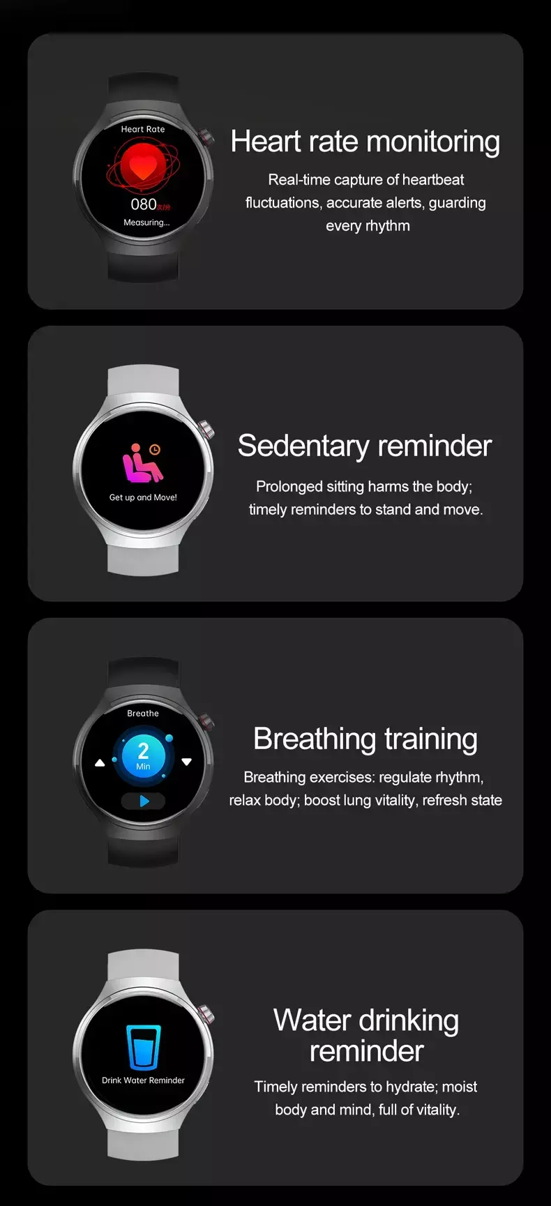 Funções esportivas: contagem de passos/rastreamento de calorias/medição de distância, vários modos esportivos.