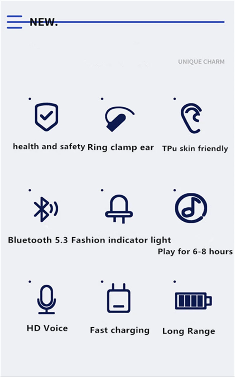 ? Design leve:Fones de ouvido individuais pesam apenas 6g.De acordo com o formato do ouvido humano, disperse o ponto de tensão da orelha, de modo que a orelha fique uniformemente estressada durante exercícios intensos e não seja fácil de cair.